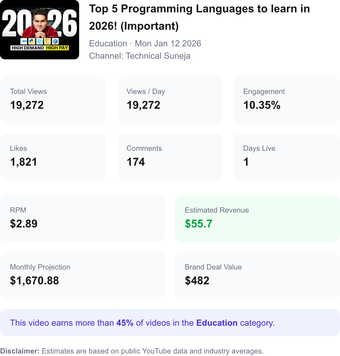 Insights and estimates are based on public data. Actual results may vary depending on monetization status, audience geography, advertiser demand, and YouTube policies.